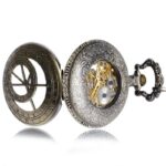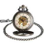 Dit zakhorloge zit in een kast in jagerstijl met een voorklep in reliëf en gaat open door de opwindkroon op het middaguur in te drukken. De overzichtelijke wijzerplaat heeft een sobere index waaromheen de drie slanke wijzers boven het skelethart met een opmerkelijke tijdnauwkeurigheid bewegen. De achterkant van het horloge onthult de reliëfgravures van de kast en in het midden biedt een transparant venster horlogeliefhebbers en liefhebbers een meeslepende blik op de interne gemechaniseerde werking. Uitgerust met een bijpassende riemketting is dit mechanische zakhorloge voor steampunk-liefhebbers meteen klaar om te dragen zodra het is uitgepakt. Met een twee- of driedelig pak, een vormhoed of een korset is dit zakhorloge ideaal om terug in de tijd te reizen en waarom zou u zich niet aansluiten bij het tijdperk van de Britse dokter.