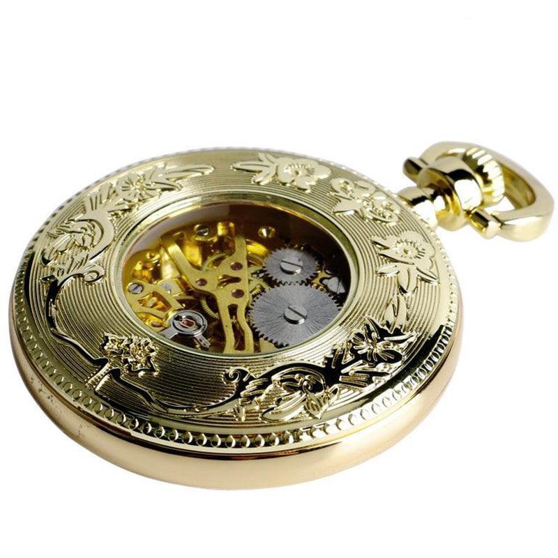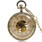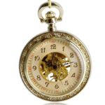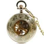 Het transparante glas onthult een grote index met klassieke Arabische cijfers waarop de drie fijne wijzers met precisie en nauwkeurigheid draaien. Het skelethart maakt dit tot een kwaliteitsuurwerk dat zijn mechanisch uurwerk in actie onthult aan de achterkant van het horloge. Voor amateurs en liefhebbers, dit prachtige zakhorloge maakt een chique en luxe statement wanneer gedragen met 2 en 3 delige pakken of als een hanger op lange strass jurken.
