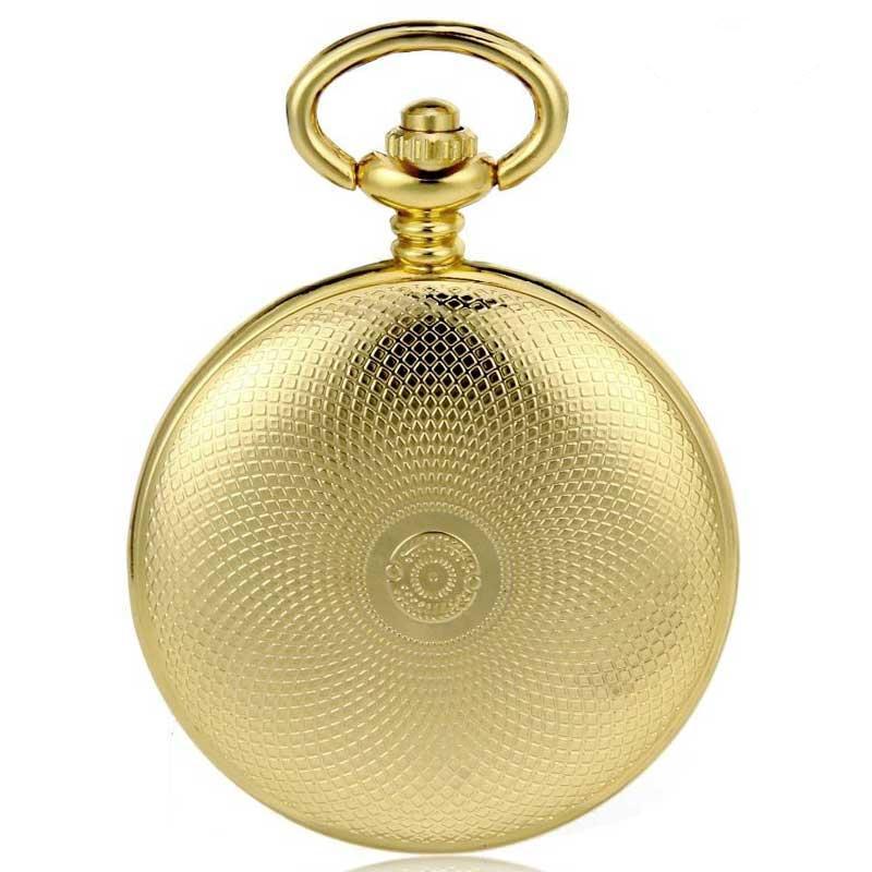 Om hem te openen, drukt u zachtjes op de bovenkant van de kroon om de beschermende klep te laten zakken en de prachtige moderne wijzerplaat te onthullen met een gemechaniseerd skelethart dat de drager in staat stelt de raderen van het uurwerk in beweging te bewonderen terwijl hij de tijd afleest. In het midden van de Romeinse cijferindex worden deze drie elegante wijzers met een nauwkeurig uurritme geanimeerd door de gemechaniseerde opwinding die moet worden uitgevoerd door de bovenste kroon 30 tot 40 slagen te draaien. De achterkant van het horloge is solide en onthult een in reliëf gegraveerde metalen achterkant van de kast, die aangenaam is om vast te houden telkens als de tijd wordt afgelezen. Geleverd met een riemketting die past bij het metaal van de kast en de robuuste schakels, is dit luxe zakhorloge klaar om te dragen zodra het is uitgepakt. Op klassieke pakken, lange jurken, op het gilet of in de broekzak, dit prachtige zakhorloge met een gegraveerd koninklijk wapen in reliëf is het chique uurwerk om altijd te dragen.