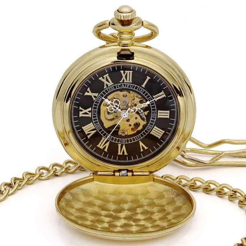 Een goudkleurig mechanisch zakhorloge