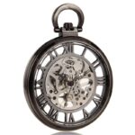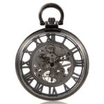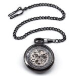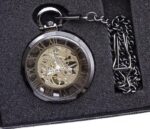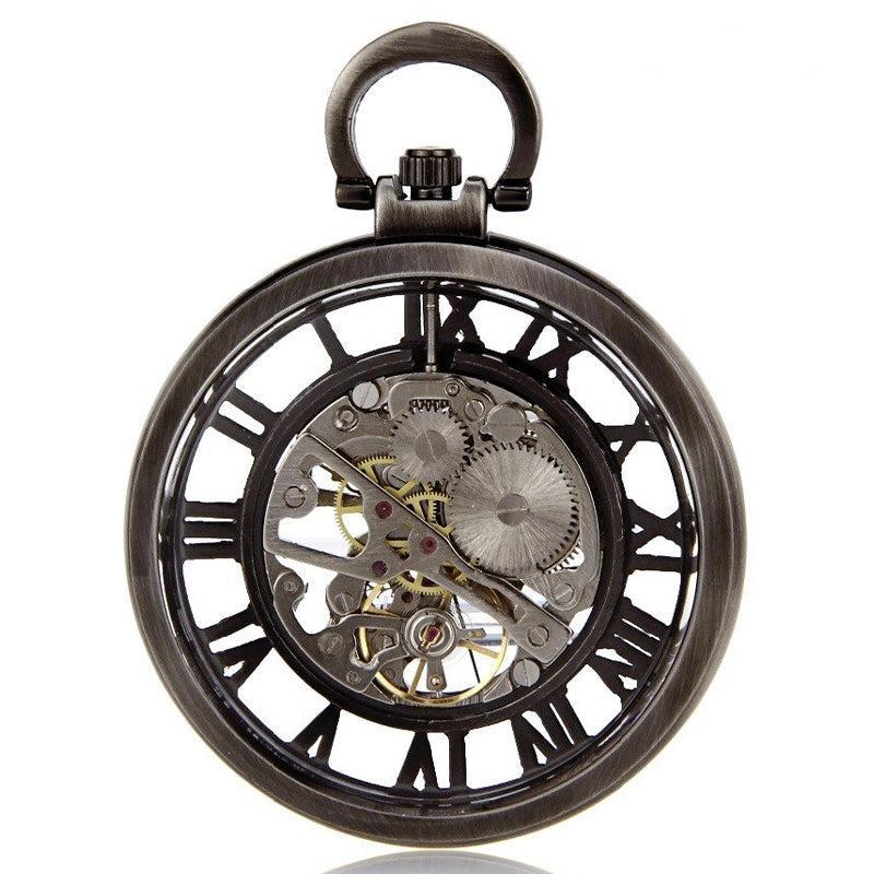 Het heeft een mechanisch uurwerk met automatische opwinding, wat erg praktisch is en waardoor de drager het niet elke dag hoeft op te winden. De drie kleine, elegante witte wijzers op de wijzerplaat draaien om een gebeeldhouwde Romeinse cijferindex onder de kroon. Hij wordt geleverd met een riemgespketting die bij de zilveren kast past, zodat hij veilig aan een riem of broek kan worden gehangen. Ideaal als cadeau of om te verzamelen, dit is een uniek uurwerk om bij elke gelegenheid te dragen.