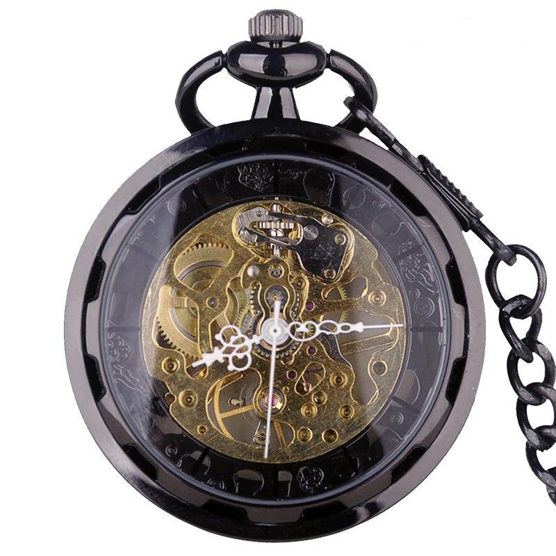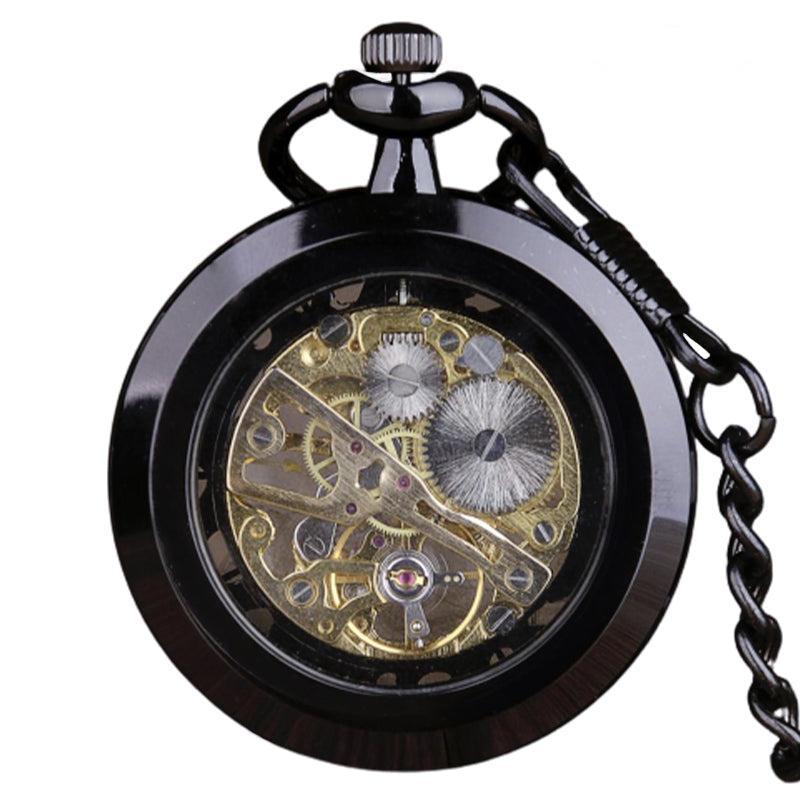 Een zakhorloge met skelet en zichtbaar mechanisme