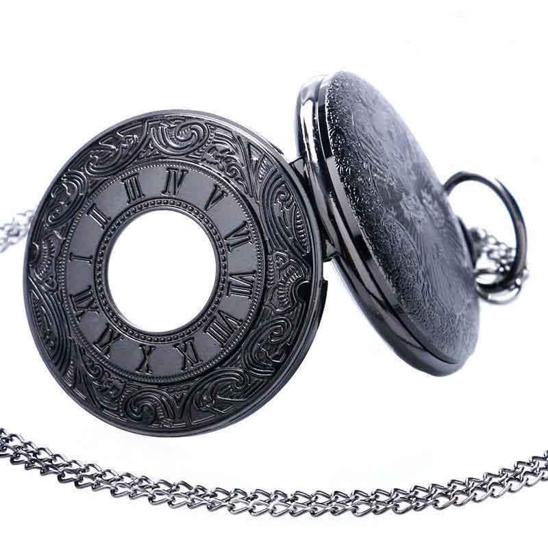 De sluiting van dit mechanische horloge onthult een esthetisch aangename zwarte gotische decoratie in reliëf. Het kwartsuurwerk van het Cobalt hanghorloge wordt afgemaakt door de kostbare vintage wijzers die via de open industriële tandwielkast naar een tijdmarkering met Romeinse cijfers en Arabische cijfers wijzen voor een 24-uurs weergave. Druk op de opwindkroon om de tijd in te stellen en de secondewijzer van uw Cobalt sautoir horloge te richten.