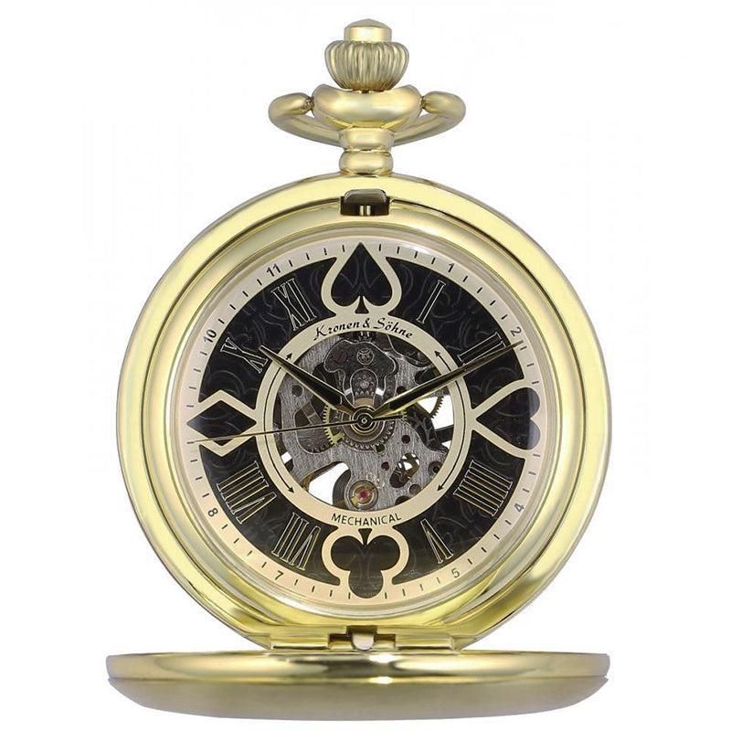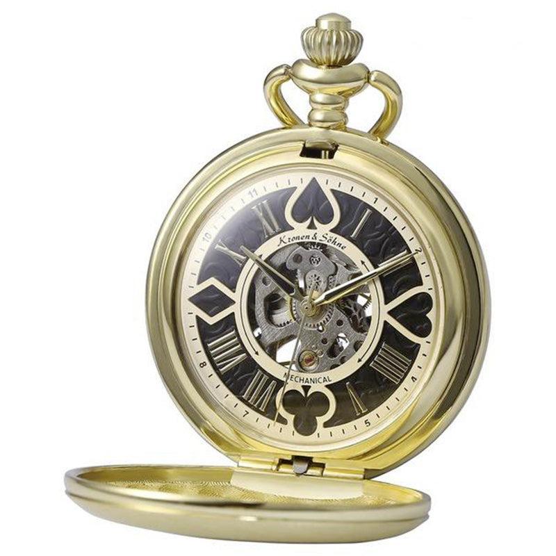 De drie elegante secondewijzers vormen het hart van het uurwerk van dit authentieke zakhorloge. De clip-ketting past bij het etui en kan aan de broek worden gehangen voor een unieke look.