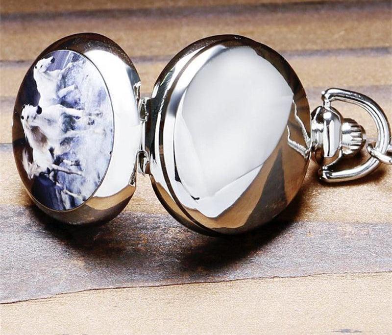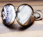Als u op de bovenkant van de kroon drukt, gaat de beschermende klep open en wordt een elegante witte wijzerplaat met Arabische cijfers onthuld. Onder het glas bewegen de drie slanke wijzers in de maat van het ritme van de betrouwbare en precieze kwartsbatterij. De batterij bevindt zich in de behuizing aan de achterzijde en heeft een levensduur van twee tot vijf jaar, die aan het eind van de levensduur gemakkelijk kan worden vervangen door de behuizing aan de achterzijde los te schroeven. De solide achterkant van het horloge doet onmiskenbaar denken aan de klassieke uurwerken van onze grootouders, en de look van geborsteld metaal geeft het een chique, moderne touch die geweldig is om elke dag te accessoriëren voor een prachtige look. Dit mooie kwartszakhorloge is direct na het uitpakken klaar om te dragen en heeft een ketting met een sluiting die ideaal is om als halsketting om de hals te dragen. Door de verschillende mazen kan hij aan de gewenste lengte worden aangepast als hanger, halssnoer of halsketting.